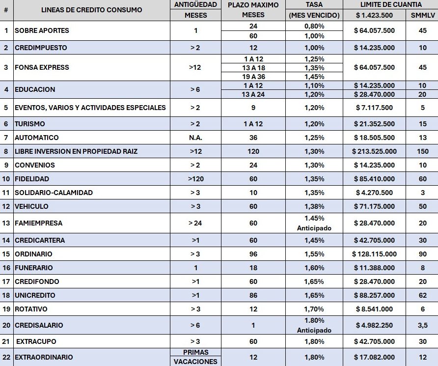 Contamos con un portafolio diversificado de opciones crediticias diseñadas a medida de las necesidades de nuestros asociados. Nuestra misión es consolidarnos como el aliado de confianza que proporciona soluciones financieras efectivas, con el propósito de elevar la calidad de vida tanto de nuestros asociados como de sus familias.